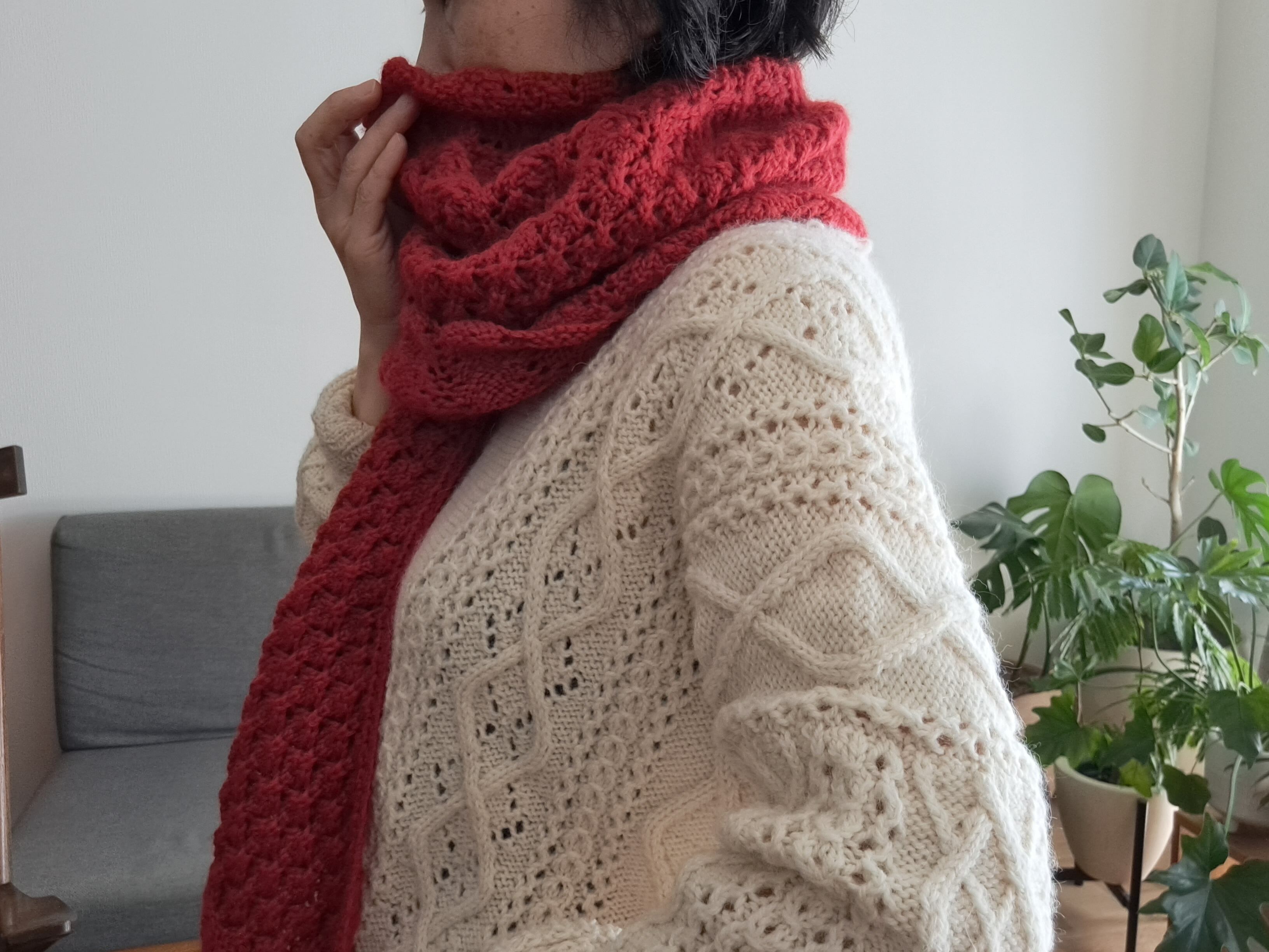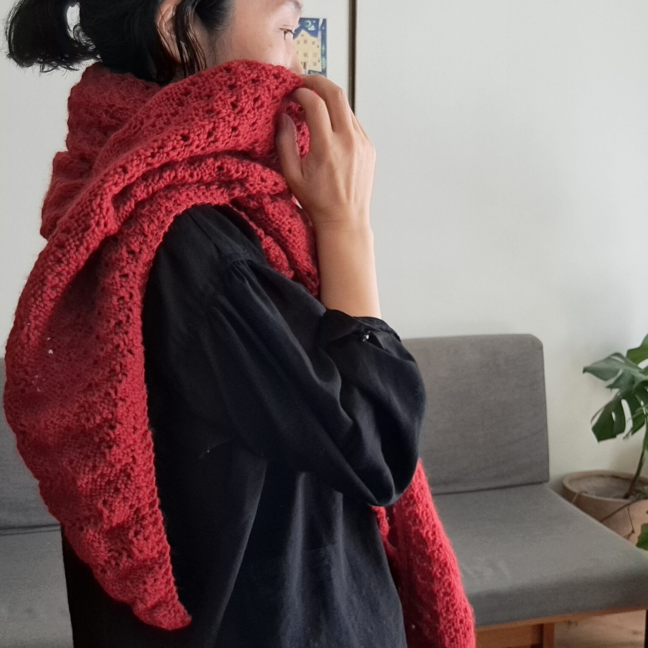 三角ショール お花mix 赤