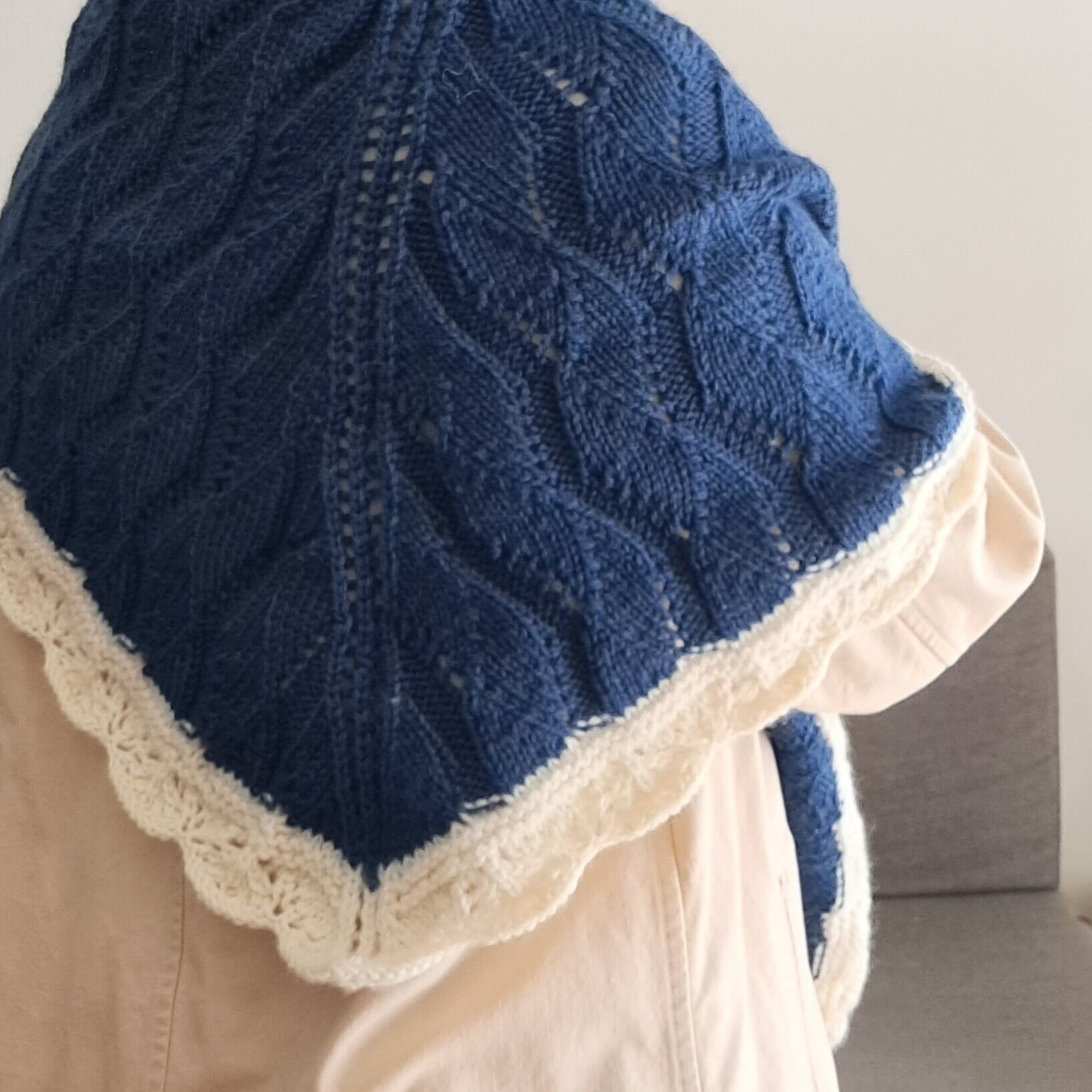 わたしの作る三角ショールの中では、中くらいのサイズだなと思います。