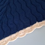 縁は、なみなみになるような柄。全体は細長いひし形の連続のような、無限マークのような感じです!襟元をまた白に戻して小さめのダイヤみたいな柄に。