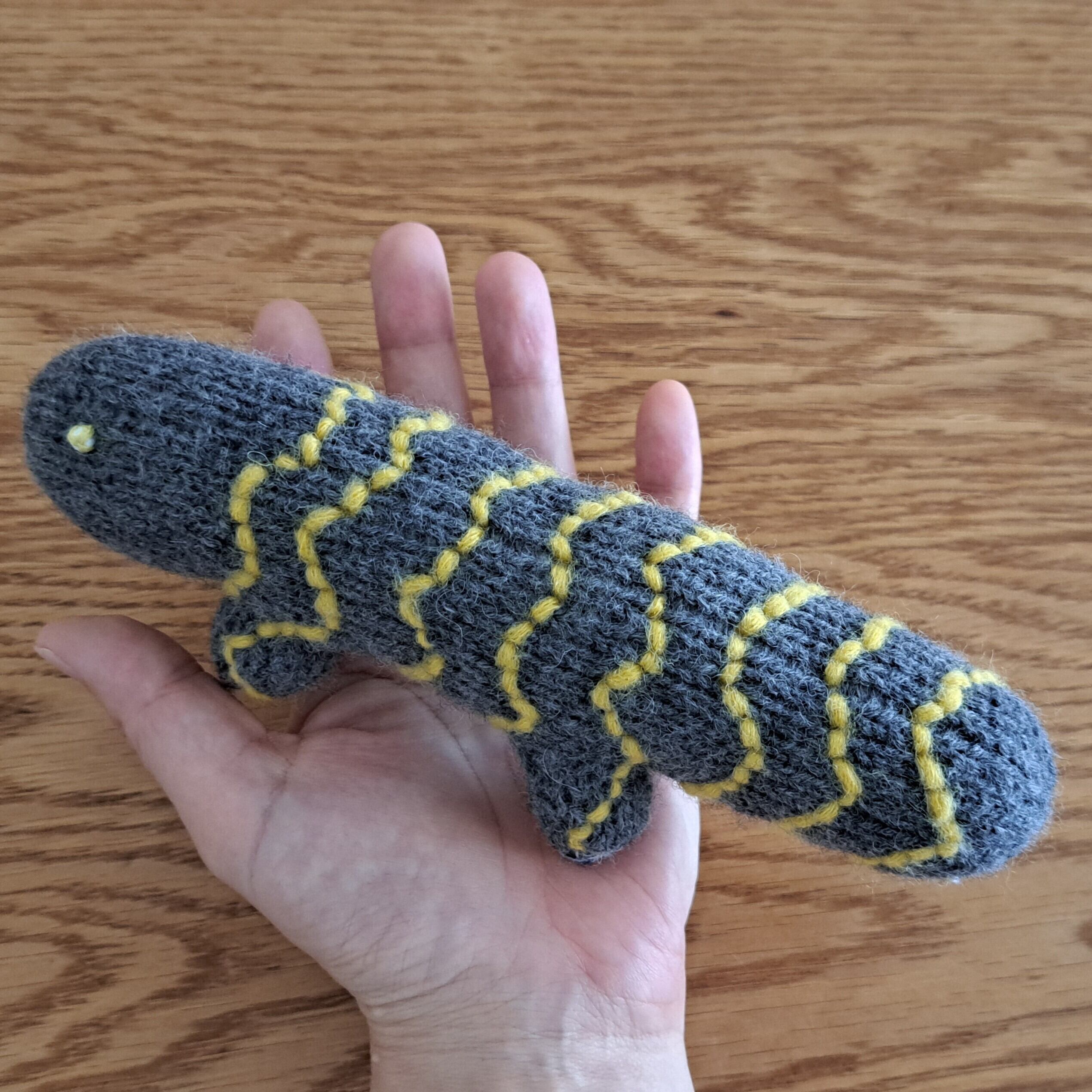 当店のシンボル、センザンコウを編んでみました!