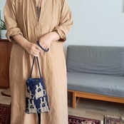 使っていくと、多少伸びます。特に紐は伸びるので長さはくるっと結んで調節していただけると使いやすいです。
