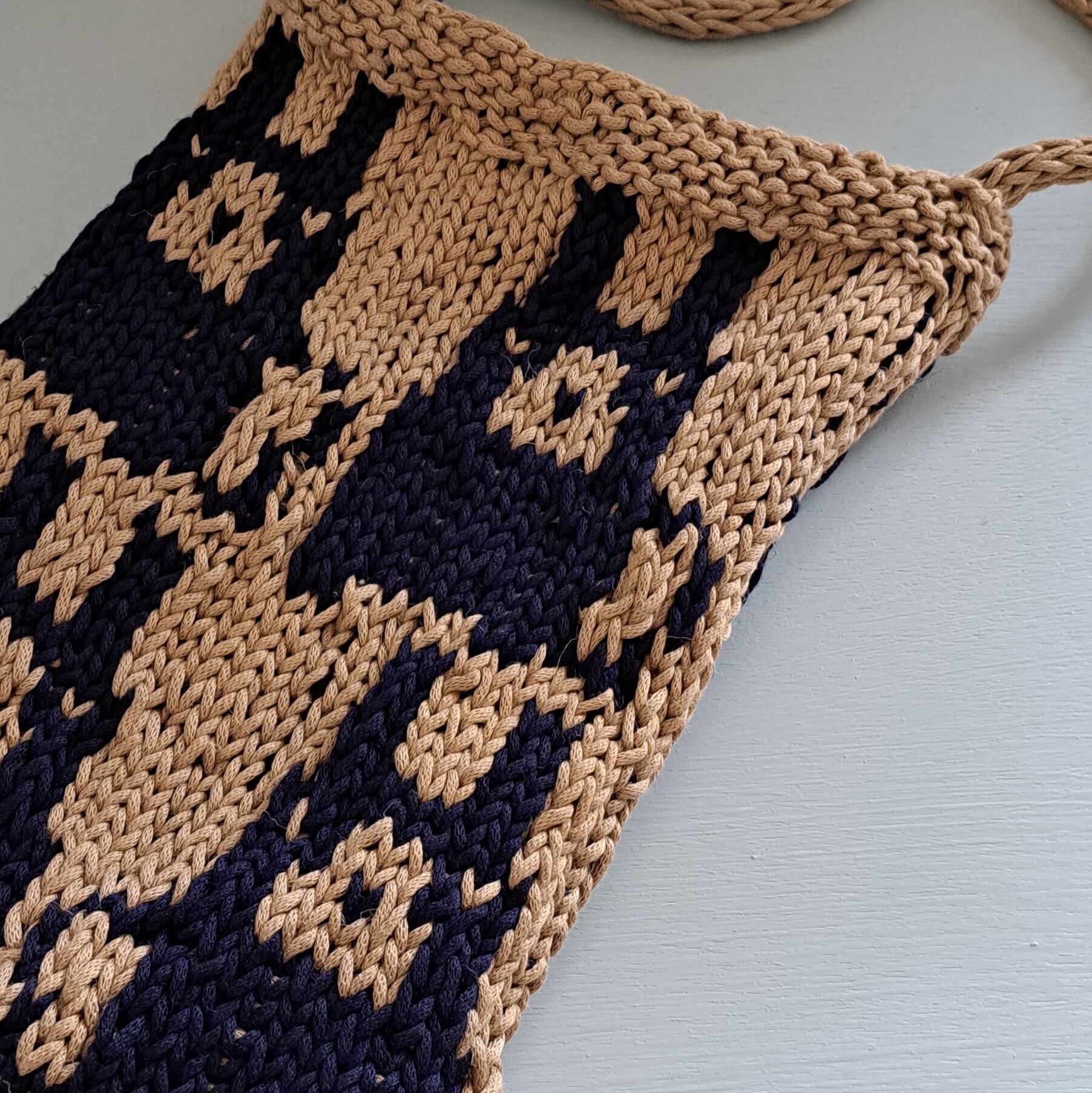 はり、こしのあるしっかりした糸は、編み込むのに力加減が難しくて、何度も作ってみました。