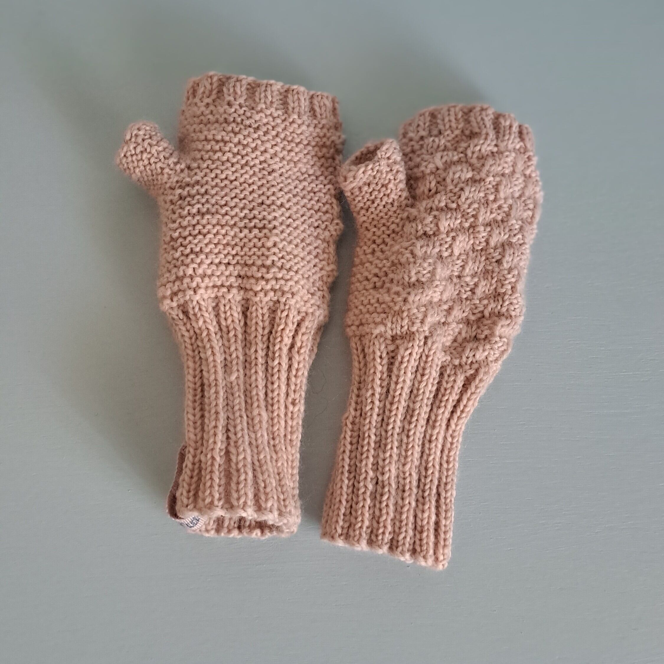 表目と裏目だけでできている、シンプルな編み方ですが、ポコポコとした模様が浮き出るように編みました。何だか愛嬌のある出来上がりになりました。