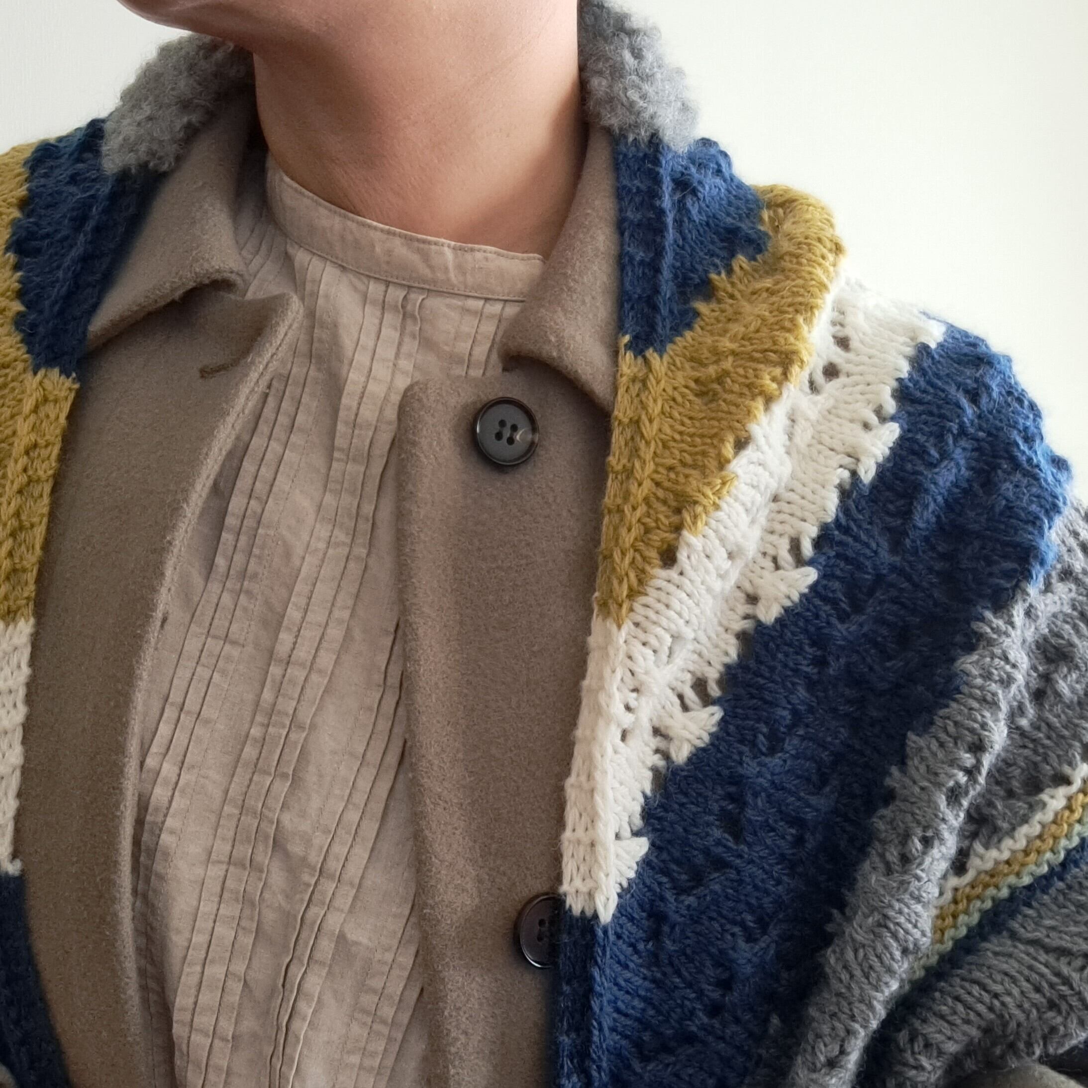 色も、柄も、素材もミックスして、とにかく楽しく編んだものです!