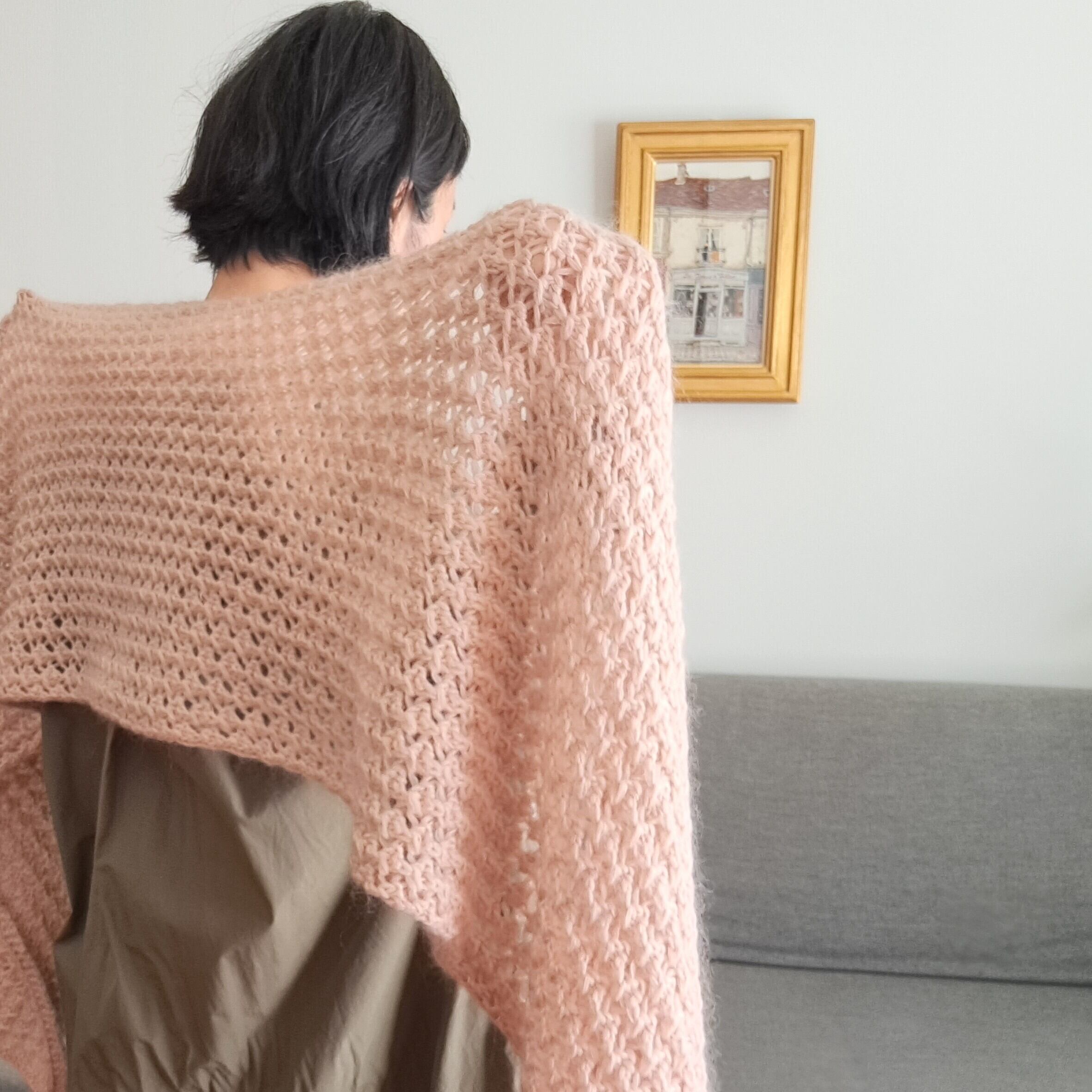 シルクモヘヤ入りマフラー さざ波柄 ダスティピンク