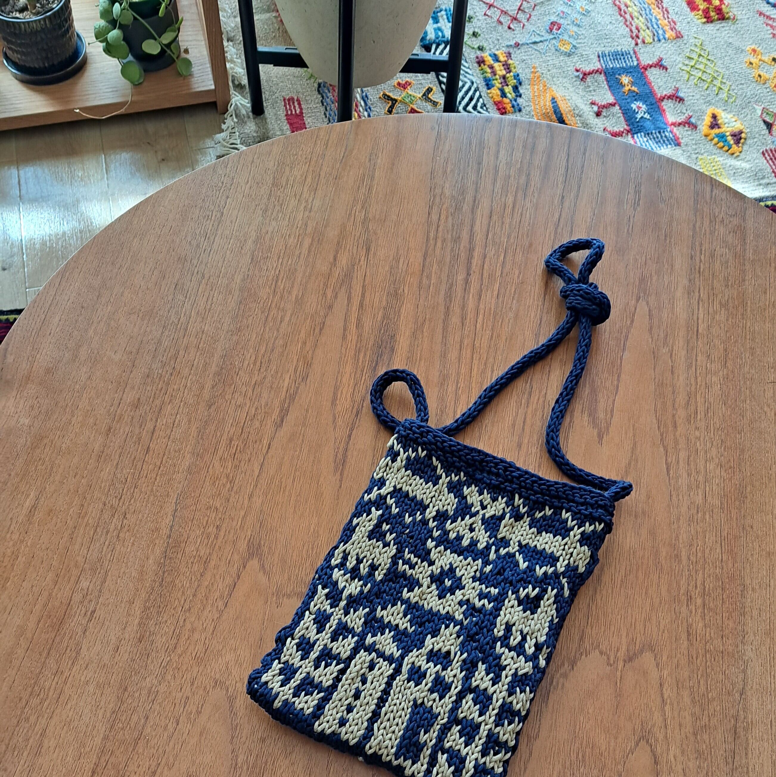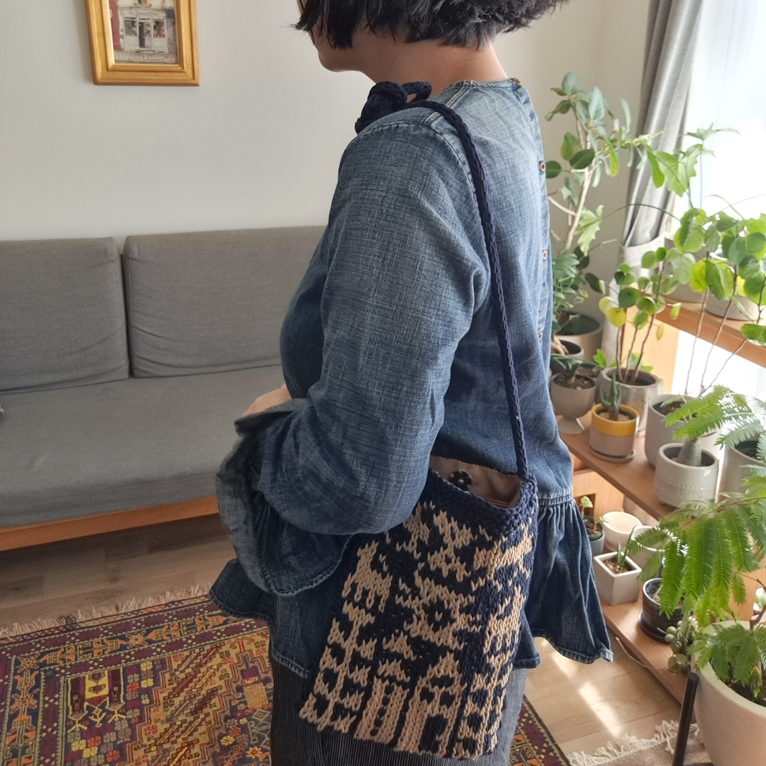 編み込みポシェット ラグの世界〈王国〉 ネイビー×ベージュ