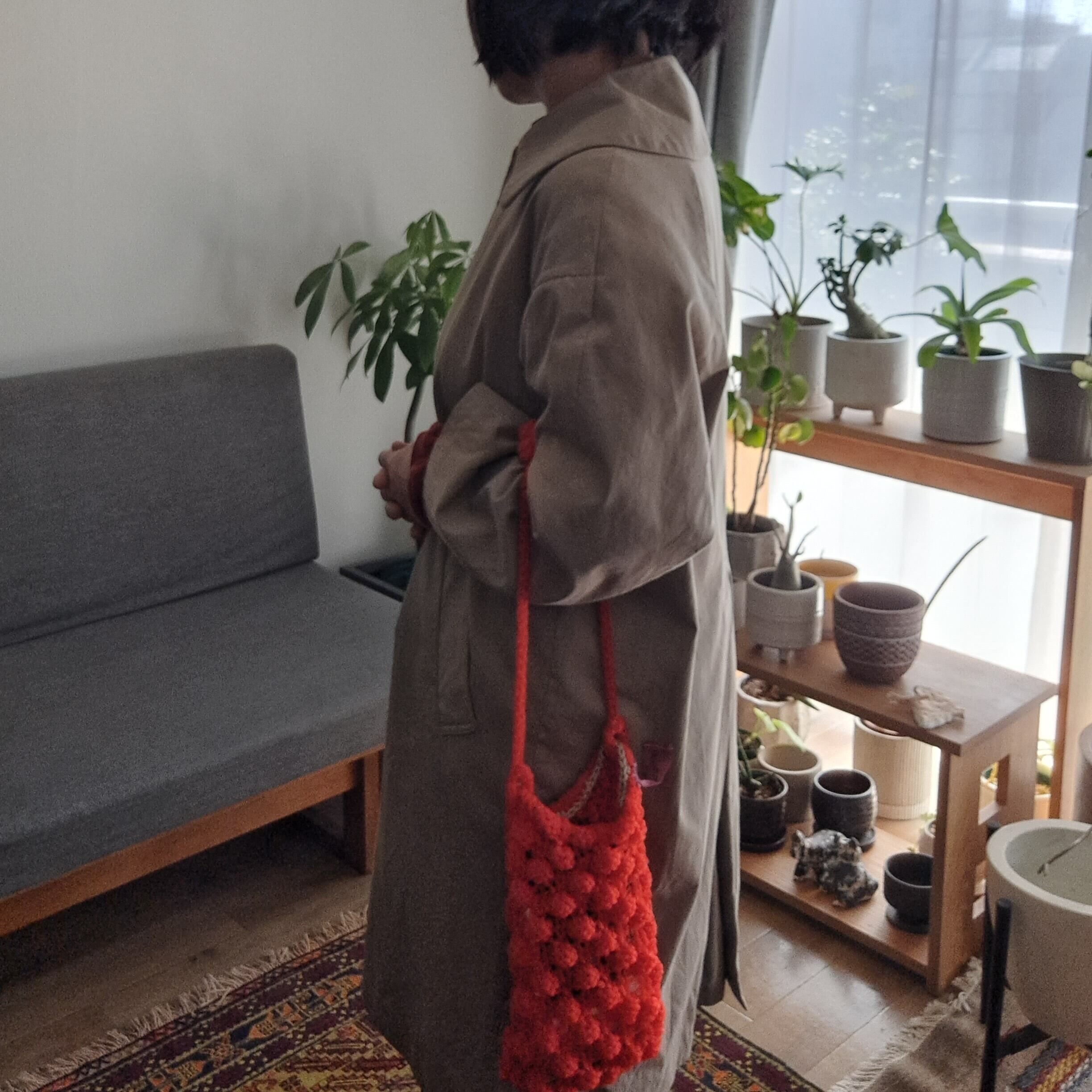 夏にも使えるポップなポシェットがほしくて作ってみました。